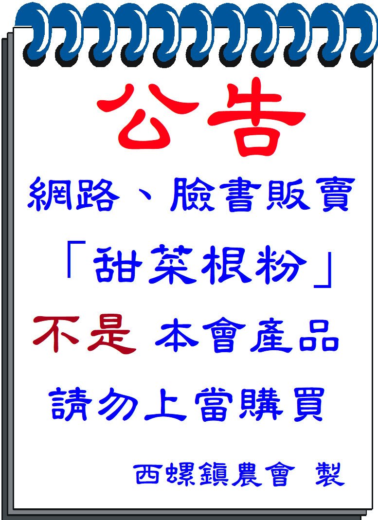 [公告]再次澄清網路、臉書販賣「甜菜根粉」不是本會產品,請勿上當購買